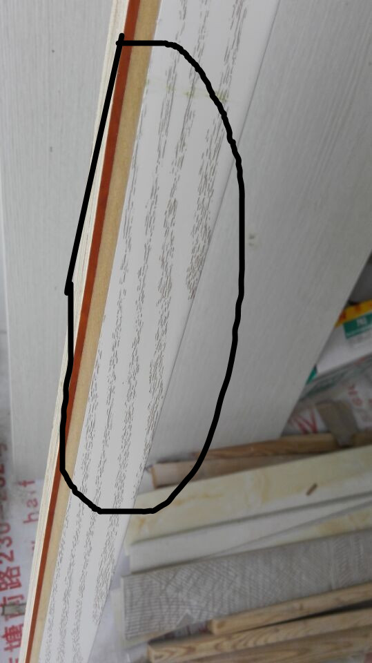 除了以上兩種辨別模壓門板的好壞,還有一種簡單的方法那就是通常做櫥柜 衣柜的時(shí)候 都會(huì)有 調(diào)整塊這個(gè)項(xiàng)目,通常安裝過程中多少都會(huì)需要切割尺寸(因?yàn)楝F(xiàn)場墻體尺寸都是不標(biāo)準(zhǔn)),如果是差的模壓門板的話,切割之后會(huì)出現(xiàn)這樣的現(xiàn)象。 見圖